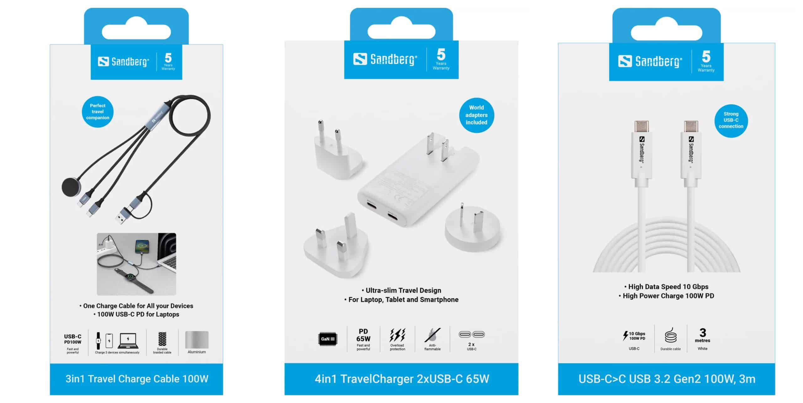 A Sandberg új USB-kábelekkel – beleértve a 3 és 5 m hosszú, 10 Gbps-os sebességű USB 3.2 Gen 2-, az 1 m-es MicroUSB- és az
