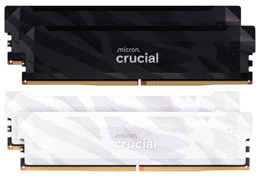 A katonai mintázatból inspirálódott dizájn, matt fekete (stealth) vagy hófehér (snow fox) színekben elérhető, és a Crucial új hűtőbordája ötvözi a funkcionalitást a látványos megjelenéssel. A gyémántvágású Crucial logó és a „Crucial Pro” gerincfelirat taktikus, prémium megjelenést kölcsönöz.