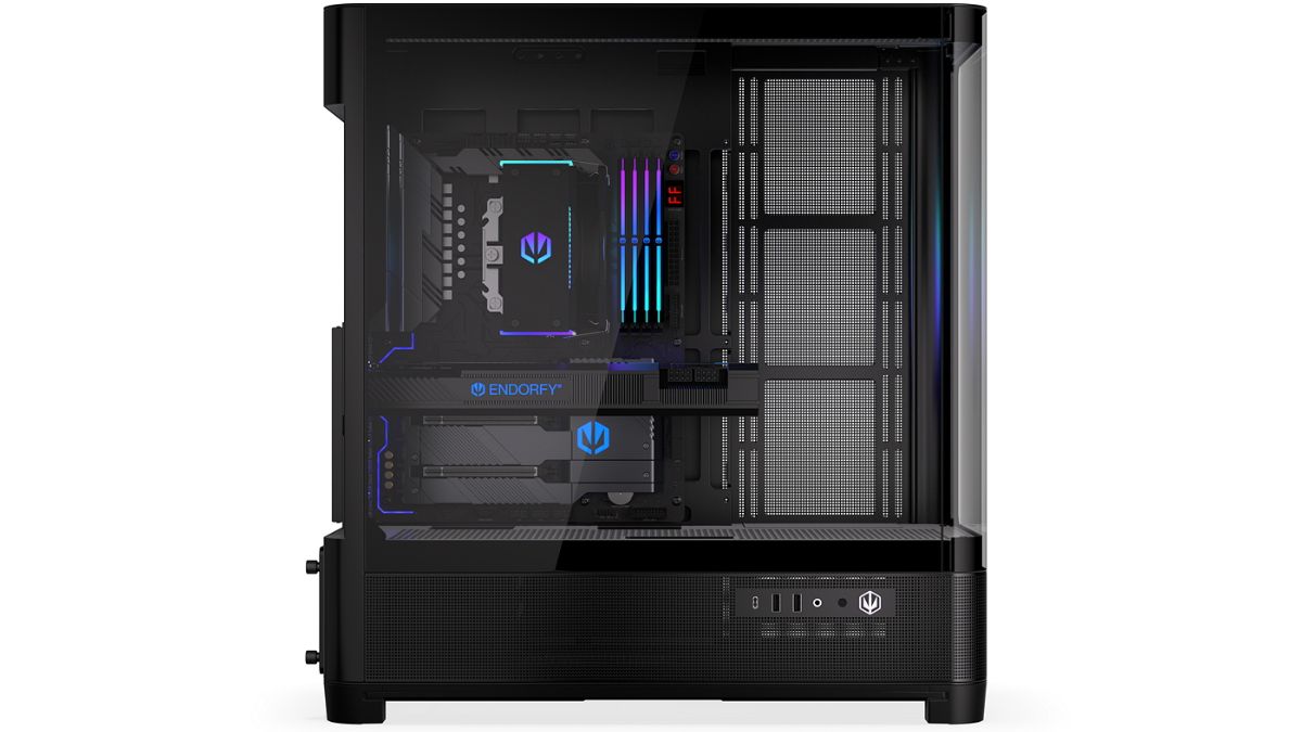 Az ENDORFY az Aquarius 8000 sorozattal lépett be a prémium „showcase” gépházak piacára, ahol a hangsúly a látvány és a csúcskategóriás hardvertámogatás ötvözésén van. A sorozat két fő modellje, a Corona és a Flex, szakít a hagyományos dobozformával: a hajlított edzett üveg előlap és a sík oldallap panorámaszerű betekintést nyújt a gép belsejébe. A mérnöki tervezés során kiemelt figyelmet kaptak a méretek: a házak akár 450 mm hosszú grafikus kártyákat is képesek befogadni, ami a legmodernebb, masszív hűtésű GPU-k számára is bőséges helyet jelent. A hűtési potenciál kiemelkedő, hiszen maximum 420 mm-es folyadékhűtő radiátorokat és összesen tíz darab 120 mm-es ventilátort támogat a rendszer.