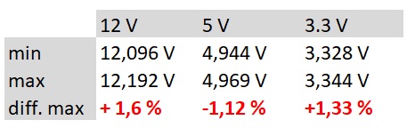 Megnéztük a 12V, 5V és 3,3V ágak működését. Ezek közük a modern PC-k energiaigényének túlnyomó részét a 12V-os ág fedezi, ezért ennek minősége kritikus.