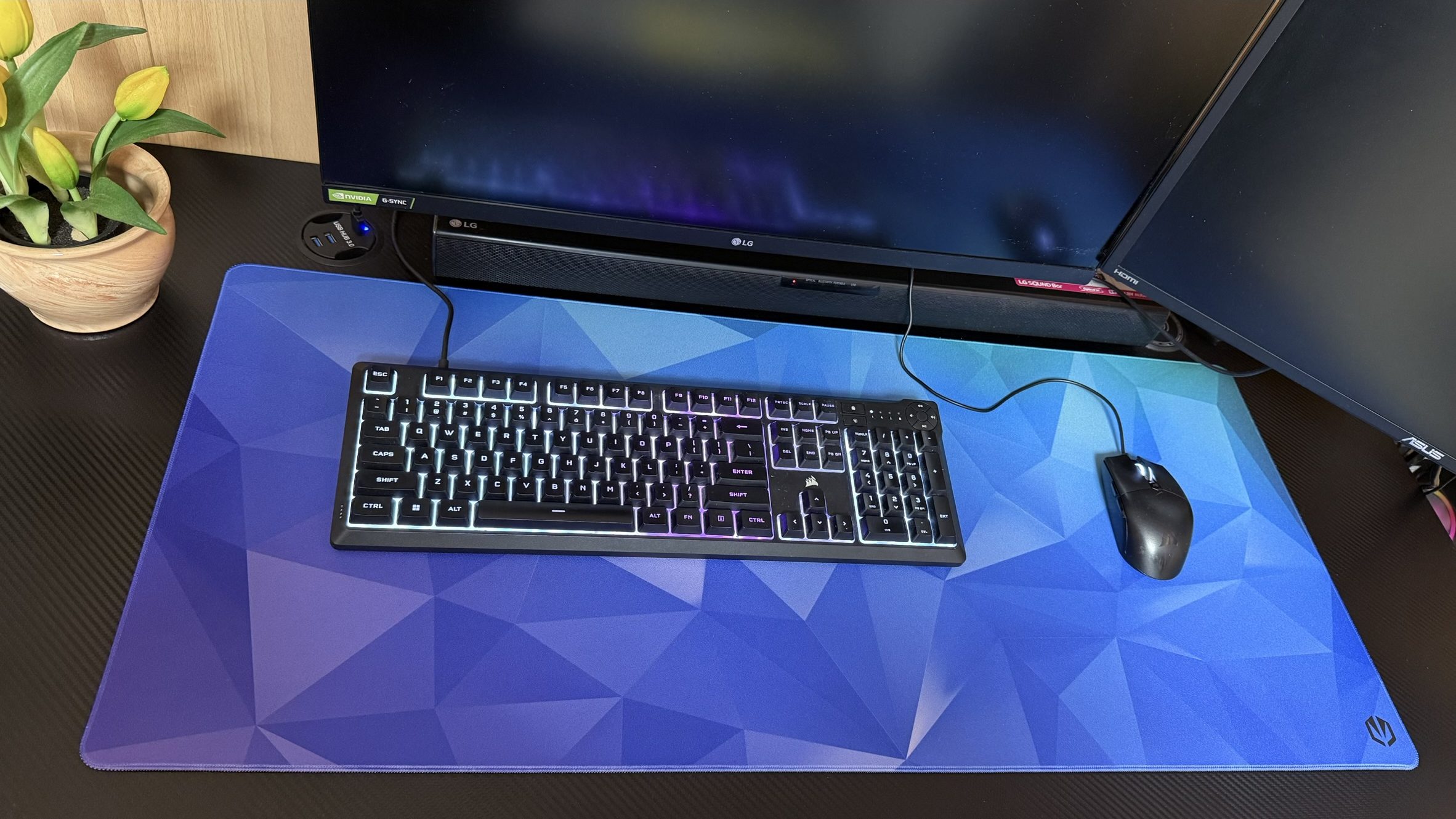 A Crystal XL esetében a kék szín dominál, miközben a bal alsó sarokból a jobb felső sarok felé lilából zöldbe megy át az árnyalat. A mintázat kristályt utánzó, enyhén 3D-s beütésű. A jobb alsó sarokban találjuk az Endorfy logót, fekete színben. A felülettel kapcsolatban érdemes megemlíteni, hogy az cseppálló, ennek ellenére a cukros italok asztal feletti használatát mindenkor érdemes kerülni. A lekerekített szélekkel ellátott egérpad varrása minőségi látszatot kelt és strapabírónak tűnik.